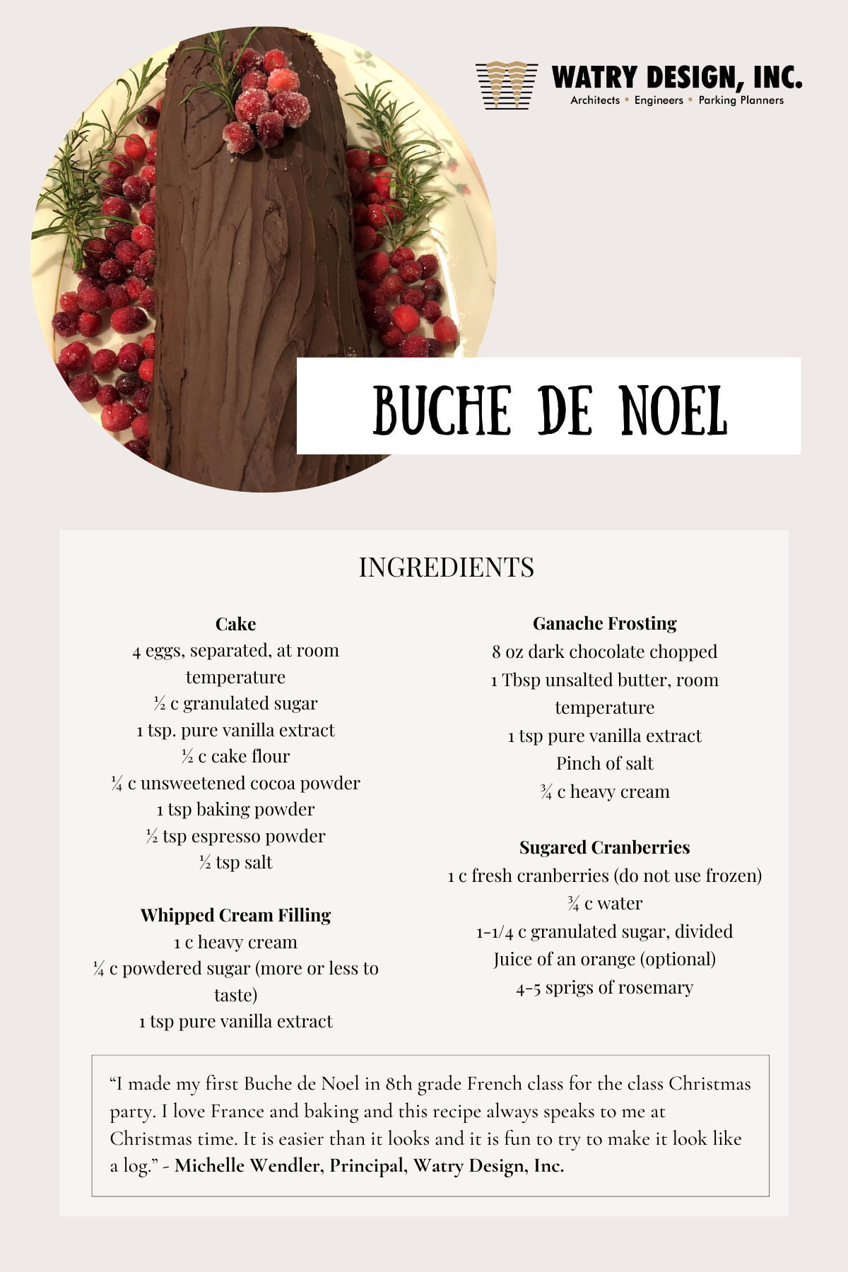 I made my first Buche de Noel in 8th grade French class for the class Christmas party. I love France and baking and this recipe always speaks to me at Christmas time. It is easier than it looks and it's fun to try to make it look like a log!